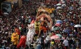 REPUBLIKA.CO.ID, JAKARTA -- Karnaval perayaan Cap Go Meh di kawasan Glodok, Jakarta Barat, Ahad (21/2) berlangsung semarak. Ratusan warga memadati ruas sepanjang Jalan Hayam Wuruk untuk menyaksikan pawai dan atraksi budaya. Berbagai seni dan budaya khas pecinan Glodok ditampilkan, termasuk juga seni budaya Betawi. Peserta karnaval terdiri dari 80 arak-arakan. Meliputi Barongsai, Liong, Tangsin dan lain-lain. Melalui kegiatan ini diharapkan dapat menggali dan melestarikan seni budaya yang ada di kawasan Glodok.