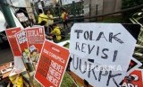 REPUBLIKA.CO.ID, JAKARTA -- Sejumlah mahasiswa yang tergabung dalam kelompok BEM Seluruh Indonesia melakukan "Aksi Nasional Menolak Revisi UU KPK" di depan Komplek Parlemen , Jakarta, Selasa (23/2).