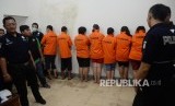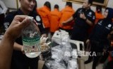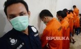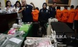 Tersangka dan barang bukti ditunjukkan saat gelar perkara kasus aborsi pada sebuah klinik di Jalan Cimandiri no. 7, Menteng, Jakarta Pusat, Rabu (24/2). (Republika/Yasin Habibi)