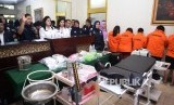 Tersangka dan barang bukti ditunjukkan saat gelar perkara kasus aborsi pada sebuah klinik di Jalan Cimandiri no. 7, Menteng, Jakarta Pusat, Rabu (24/2). (Republika/Yasin Habibi) (FOTO : Republika/ Yasin Habibi)