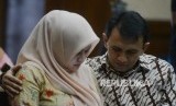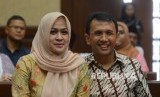 Terdakwa kasus korupsi dana bansos di Sumatera Utara, pasangan suami istri Gubernur Sumut nonaktif Gatot Pujo Nugroho (kanan) bersama Evy Susanti (kiri) di Pengadilan Tipikor, Jakarta, Rabu (24/2). (Republika/Raisan Al Farisi) (FOTO : Republika/Raisan Al Farisi)
