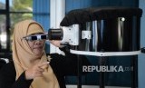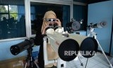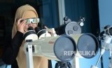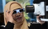 REPUBLIKA.CO.ID, JAKARTA — Pengunjung mencoba kacamata dan teleskop untuk melihat gerhana matahari di Planetarium dan Observatorium, Taman Ismail Marzuki (TIM), Jakarta, Senin (7/3).