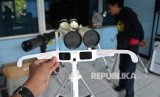 Petugas mempersiapkan kacamata untuk melihat gerhana matahari di Planetarium dan Observatorium, Taman Ismail Marzuki (TIM), Jakarta, Senin (7/3). (Republika/Yasin Habibi) (FOTO : Republika/Yasin Habibi)