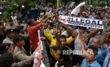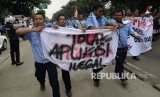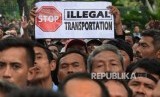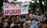 REPUBLIKA.CO.ID, JAKARTA -- Ribuan sopir angkutan umum melakukan aksi di depan Balai Kota DKI Jakarta, Senin (14/3).