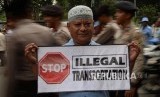 Ribuan sopir angkutan umum melakukan aksi di depan Balai Kota DKI Jakarta, Senin (14/3). (Republika/Yasin Habibi) (FOTO : Republika/ Yasin Habibi)