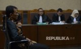 Terdakwa kasus suap Hakim dan Panitera PTUN Medan Gatot Pujo Nugroho (kanan) dan Evy Susanti (kiri) menjalani sidang putusan di Pengadilan Tipikor, Jakarta, Senin (14/3)..(Republika/Raisan Al Farisi) (FOTO : Republika/Raisan Al Farisi)