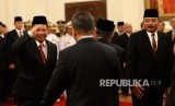 REPUBLIKA.CO.ID, JAKARTA -- Presiden Joko Widodo (Jokowi) melantik Kepala Badan Nasional Penanggulangan Terorisme (BNPT) M Tito Karnavian dan Kepala Badan Keamanan Laut (Bakamla) Arie Soedewo di Istana Kepresidenan, Rabu (16/3).