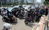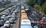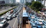 REPUBLIKA.CO.ID,JAKARTA -- Aksi unjuk rasa yang dilakukan oleh ribuan pengemudi taksi menyebabkan kemacetan lalu lintas di Jalan Gatot Soebroto, Selasa (22/3).