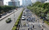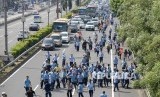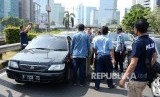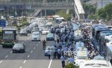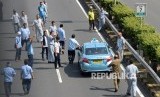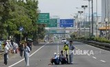 REPUBLIKA.CO.ID, JAKARTA -- Sopir taksi melakukan sweeping sopir taksi lain untuk mengajak demo di tol dalam kota, Jakarta, Selasa (22/3).