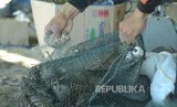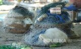 Supaya awet lobster tangkapan sebelum dikirim ke bandar tiburi pasir laut, di Pantai Rancabuaya, Kabupaten Garut, Kamis (24/3). (Republika/Edi Yusuf) (FOTO : Republika/Edi Yusuf)