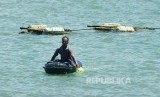 Seorang pemburu lobster usai memeriksa perangkap, di Pantai Rancabuaya, Kabupaten Garut, Kamis (24/3).(Republika/Edi Yusuf)