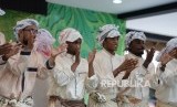 Sejumlah seniman membawakan kesenian tradisional Saudi Arabia saat Pekan Kebudayaan Saudi Arabia di Anjungan NAD, TMII, Senin (28/3). (Republika/Wihdan Hidayat)