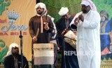Seniman membawakan kesenian tradisional Saudi Arabia saat Pekan Kebudayaan Saudi Arabia di Anjungan NAD, TMII, Senin (28/3). (Republika/Wihdan Hidayat) (FOTO : Republika/Wihdan Hidayat)