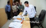 Menteri Pendayagunaan Aparatur Negara dan Reformasi Birokrasi, Yuddy Chrisnandi (kanan) melakukan inspeksi mendadak (sidak) didampingi Ketua Ombusman, Amzulian Rifai (kedua kanan) di Kantor Ombudsman, Jakarta, Selasa (29/3).(Republika/Agung Supriyanto) (FOTO : Republika/Agung Supriyanto)