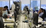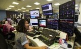 REPUBLIKA.CO.ID, JAKARTA -- Karyawan mengamati pergerakan Indeks Harga Saham Gabungan (IHSG) di Jakarta, Selasa (29/3).