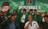 REPUBLIKA.CO.ID, JAKARTA -- Ketua Umum PPP hasil Muktamar Jakarta Djan Faridz mengangkat tangan bersama pengurus DPP dan DPW usai penutupan Mukernas II PPP di Jakarta, Rabu (30/3).
