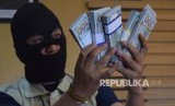 Petugas menunjukkan barang bukti hasil operasi tangkap tangan (OTT) terkait dugaan suap pegawai Kejaksaan Tinggi DKI Jakarta di Gedung KPK, Jakarta, Jumat (1/4).(Republika/Rakhmawaty La'lang)