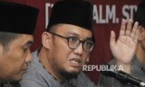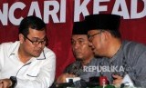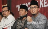 REPUBLIKA.CO.ID, JAKARTA -- Ketua Umum PP Pemuda Muhammadiyah Dahnil Anzar Simanjuntak bersama Anggota Komas HAM Manager Nasution dan Anggota LIMA Ray Rangkuti menyampaikan pernyataan pers pada acara “Mencari Keadilan untuk Suratmi” di Jakarta, Jumat (1/4).