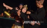Para pesilat wanita dari sejumlah perguruan silat tampil pada Gelar Pendekar Wanita di Teater Terbuka Taman Budaya Jabar, Kota Bandung, Sabtu (2/3).(Republika/Edi Yusuf)