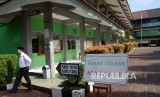 Guru melintas di depan ruang kelas saat siswa mengikuti Ujian Nasional Berbasis Komputer (UNBK) di Madrasah Aliyah Negeri (MAN) 13, Jakarta Selatan, Senin (4/4). (FOTO : Republika/Yasin Habibi)