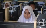 Ujian Nasional Berbasis Komputer (UNBK) di Madrasah Aliyah Negeri (MAN) 13, Jakarta Selatan, Senin (4/4). (Republika/Yasin Habibi)