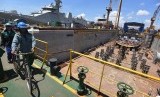 Aktivitas penyelesaian pembuatan kapal perang Strategic Sealift Vessel (SSV)-1 pesanan Filipina di galangan PT PAL, Surabaya, Jawa Timur, Senin (4/4). (Antara/Zabur Karuru)