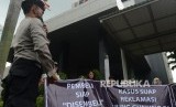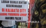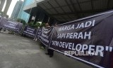Massa yang tergabung dalam Perhimpunan Pemilik dan Penghuni Satuan Rumah Susun (PPPSRS) melakukan aksi damai di depan Gedung KPK Jakarta, Jumat (8/4). (Republika/Raisan Al Farisi) (FOTO : Republika/ Wihdan)