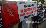 REPUBLIKA.CO.ID, JAKARTA -- Massa yang tergabung dalam Perhimpunan Pemilik dan Penghuni Satuan Rumah Susun (PPPSRS) melakukan aksi damai di depan Gedung KPK Jakarta, Jumat (8/4).