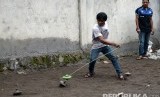 Permainan tradisional gasing di Desa Sembalun, Lombok. (Republika/Wihdan Hidayat) (FOTO : Republika/Wihdan Hidayat)