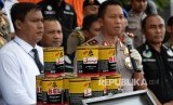 Kapolda Metro Jaya Irjen Pol Moechgiyarto (tengah) saat konferensi pers penyelundupan narkotika hasil operasi bersinar 2016 di Polda Metro Jaya, Jakarta, Rabu (13/4). (Republika/ Yasin Habibi) (FOTO : Republika/ Yasin Habibi)