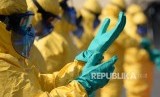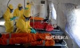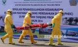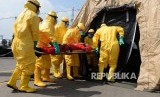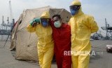 REPUBLIKA.CO.ID, JAKARTA -- Petugas Kesehatan Pelabuhan melaksanakan simulasi penanggulangan penumpang yang terkena wabah penyakit di kawasan Pelabuhan Tanjung Priok, Jakarta Utara, Kamis (14/4).