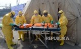 Petugas Kesehatan Pelabuhan melakukan simulasi penanggulangan wabah di kawasan Pelabuhan Tanjung Priok, Jakarta Utara, Kamis (14/4). (Republika/Yasin Habibi) (FOTO : Republika/ Yasin Habibi)