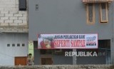 Spanduk warga yang menolak pembongkaran di Penjaringan, Jakarta Utara, Jumat (15/4). (Republika/Raisan Al Farisi) (FOTO : Republika/Raisan Al Farisi)