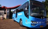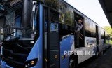 REPUBLIKA.CO.ID, JAKARTA -- PT Transjakarta resmi meluncurkan bus transjakarta baru di halaman kantor Transjakarta, Cawang, Senin (18/4). Sebanyak 247 bus hari ini resmi beroperasi, baik bus gandeng maupun bus single.