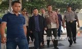 Direktur PT Agung Sedayu Group yang juga anak dari Sugianto Kusuma alias Aguan, Richard Halim Kusuma (tengah) memasuki ruangan untuk mejalani pemeriksaan di Gedung KPK, Rabu (20/4).(Republika/Raisan Al Farisi) (FOTO : Republika/Raisan Al Farisi)