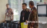 Direktur PT Agung Sedayu Group yang juga anak dari Sugianto Kusuma alias Aguan, Richard Halim Kusuma (kiri) memasuki ruangan untuk mejalani pemeriksaan di Gedung KPK, Rabu (20/4). (Republika/Raisan Al Farisi) (FOTO : Republika/Raisan Al Farisi)