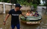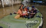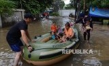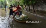 REPUBLIKA.CO.ID, JAKARTA -- Sejumlah warga menggunakan perahu untuk melintasi jalan yang terkena banjir di Wilayah Duren Bangka, Jakarta Selatan, Kamis (21/4).