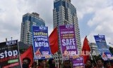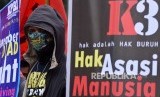 REPUBLIKA.CO.ID, JAKARTA -- Buruh yang tergabung dalam Konfederasi Persatuan Buruh Indonesia (KPBI) melakukan aksi memperingati para buruh yang menjadi korban kecelakaan kerja atau International Workers' Memorial Day di Jakarta, Kamis (28/4). Dalam aksinya buruh meminta pemerintah untuk mengoptimalikan penerapan program kesehatan dan keselamatan kerja (K3) di setiap perusahaan.