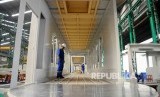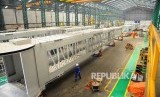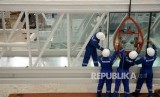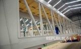 REPUBLIKA.CO.ID, CILEUNGSI -- Pekerja menyelesaikan proses pembuatan jembatan penumpang antara ruang tunggu dan pesawat (Garbarata) di PT Bukaka Teknik Utama, Cileungsi, Bogor, Jawa Barat, Senin (2/5).