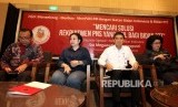 (dari kiri) Mensekneg Pratikno, Presiden ke-5 RI Megawati Soekarnoputri, Menpan RB Yuddy Chrisnandi dan Menkes Nila Farid Moeloek saat diskusi Mencari Solusi Rekruitmen PNS Yang Adil Bagi Bidan PTT di Jakarta, Senin (2/5).(Republika/Rakhmawaty La'lang)
