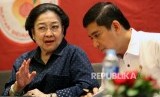 Presiden ke-5 RI yang juga Pelindung Pengurus Pusat Ikatan Bidan Indonesia (PB IBI) Megawati Soekarnoputri bersama Menpan RB Yuddy Chrisnandi (kanan) saat menghadiri diskusi Mencari Solusi Rekruitmen PNS Yang Adil Bagi Bidan PTT di Jakarta, Senin (2/5).