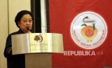 Presiden ke-5 RI yang juga Pelindung Pengurus Pusat Ikatan Bidan Indonesia (PB IBI) Megawati Soekarnoputri menjadi pembicara dalam diskusi Mencari Solusi Rekruitmen PNS Yang Adil Bagi Bidan PTT di Jakarta, Senin (2/5). (Republika/Rakhmawaty La'lang)