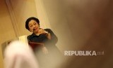 Presiden ke-5 RI yang juga Pelindung Pengurus Pusat Ikatan Bidan Indonesia (PB IBI) Megawati Soekarnoputri saat menjadi pembicara dalam diskusi Mencari Solusi Rekruitmen PNS Yang Adil Bagi Bidan PTT di Jakarta, Senin (2/5). (Republika/Rakhmawaty La'lang)
