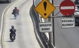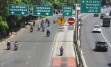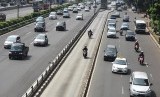 Pengendara motor menerobos jalur Bus Transjakarta di Jalan Gatot Subroto, Jakarta, Jumat (6/5). (Antara/Akbar Nugroho Gumay)