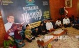 Ketua Umum Partai Kebangkitan Bangsa Muhaimin Iskandar (ketiga kiri) memberikan keterangan kepada media terkait Nusantara Mengaji saat menggelar konferensi pers di Ciganjur, Jakarta Selatan, Jumat (6/5).(Republika/Raisan Al Farisi) (FOTO : Republika/Raisan Al Farisi)