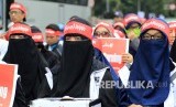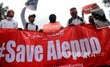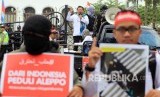 REPUBLIKA.CO.ID, BANDUNG -- Pengunjuk rasa yang tergabung dalam Gerakan Solidaritas Muslim (GSM) berjalan menuju Jalan Merdeka, sebagai bentuk simpatik terhadap perjuangan Muslim Aleppo di Suriah, Bandung, Jumat (6/5).