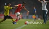 Pemain Persija Ismed Sofyan dibayangi winger Semen Padang Nur Iskandar dalam pertandingan Torabika Soccer Championship di Stadion Gelora Bung Karno, Jakarta, Ahad (9/5). Foto: Yogi Ardhi/Republika (FOTO : Yogi Ardhi/Republika)
