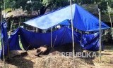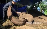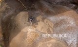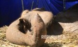 Kondisi Yani, gajah Lampung di Kebun Binatang milik Yayasan Margasatwa Tamansari Bandung itu kian memburuk setiap harinya dan hanya ditutupi kain terpal, Rabu (11/5). (Foto : Dede Lukman Hakim) (FOTO : Republika/Dede Lukman Hakim)