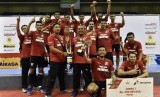 REPUBLIKA.CO.ID, JAKARTA -- Tim bola voli Surabaya Samator merayakan kemenangan usai menundukkan Jakarta BNI Taplus dalam final Proliga 2016, Ahad (15/5).