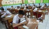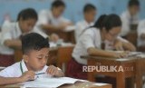 REPUBLIKA.CO.ID,JAKARTA -- Siswa mengerjakan soalUjian Sekolah/Madrasah Berstandar Daerah (US/MBD) di SDN Petojo 13 Pagi, Senin (16/5).